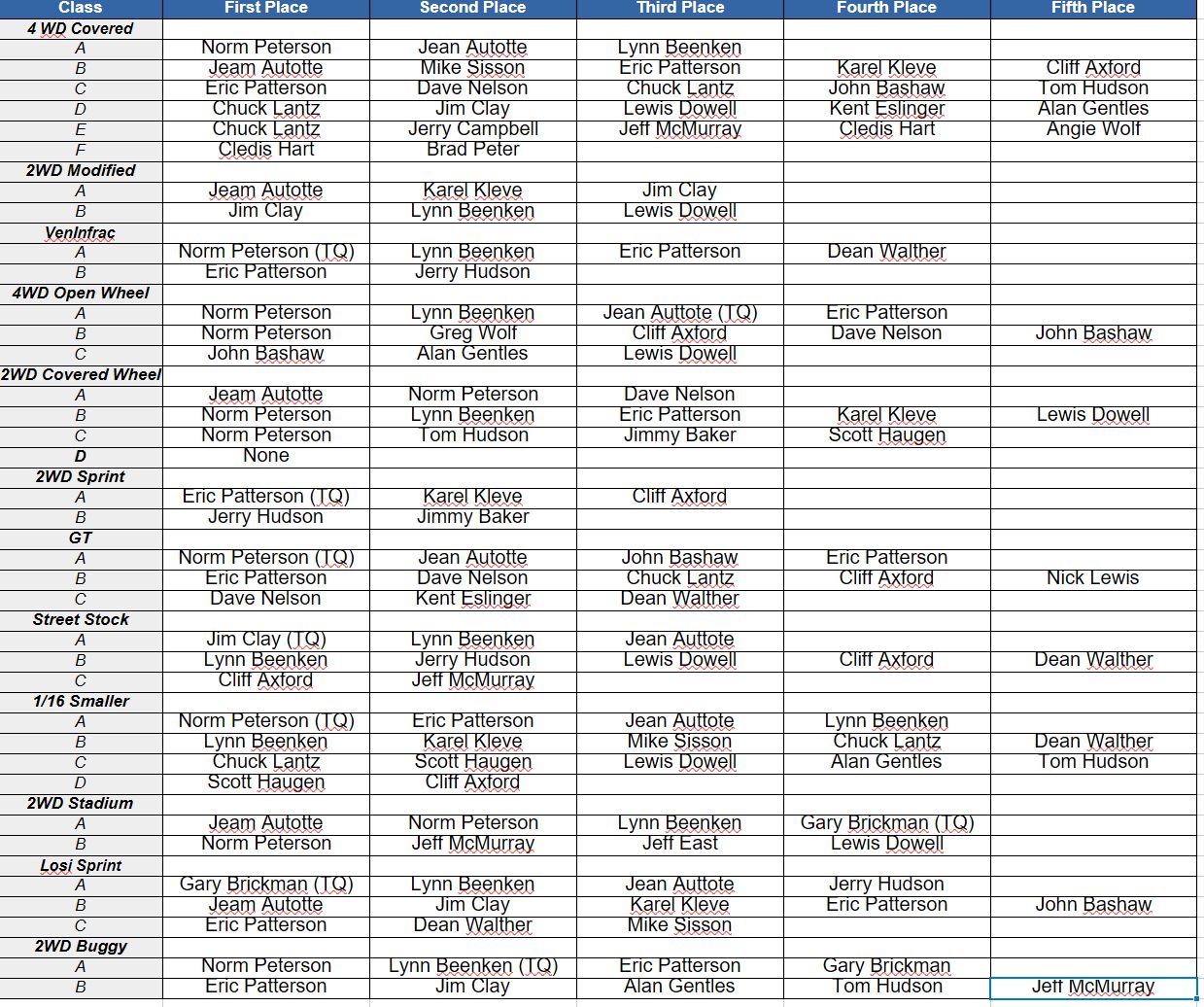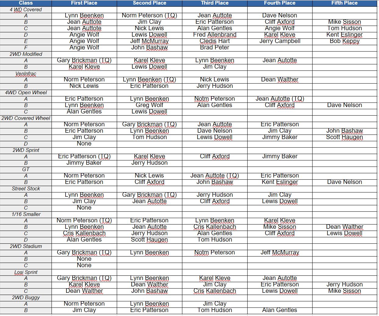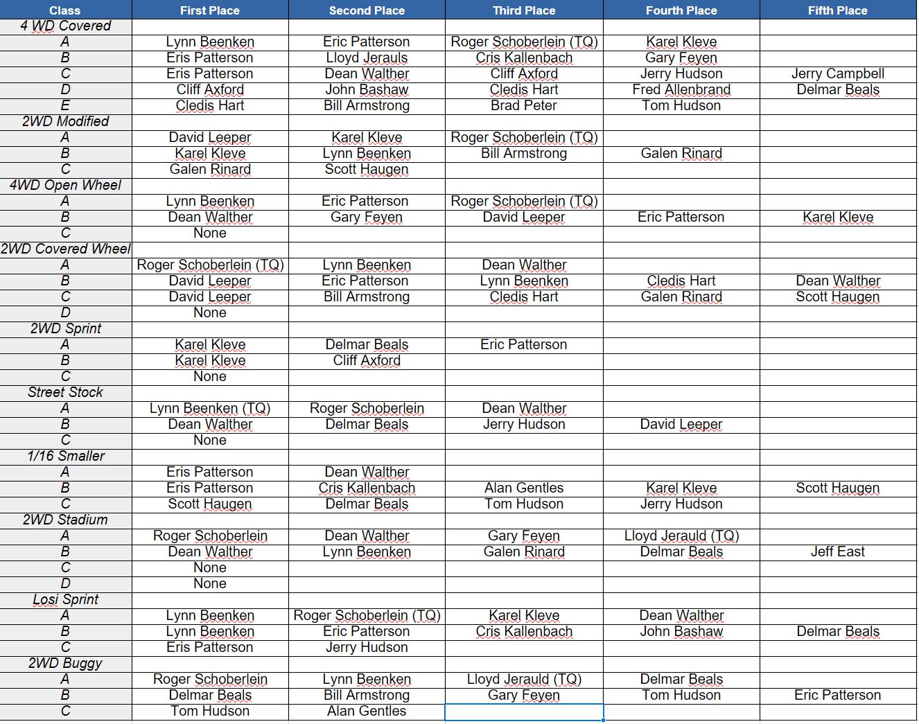 Latest Race Event Winners