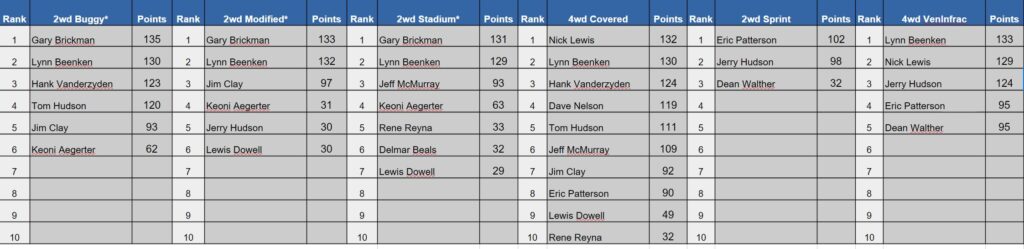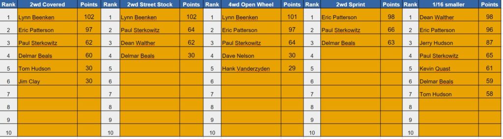 Points Standings