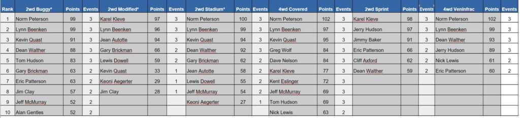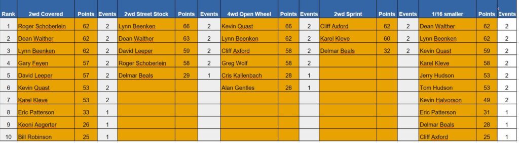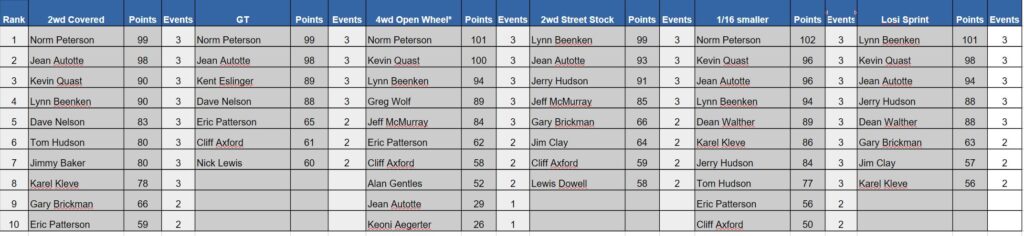 Next Event: Dirt Track Dec 23, 2025 Sign-in by 8:15am Race start 8:45am