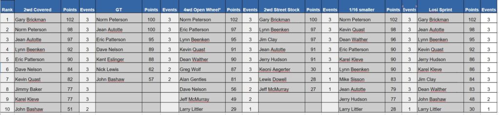 Points Standings